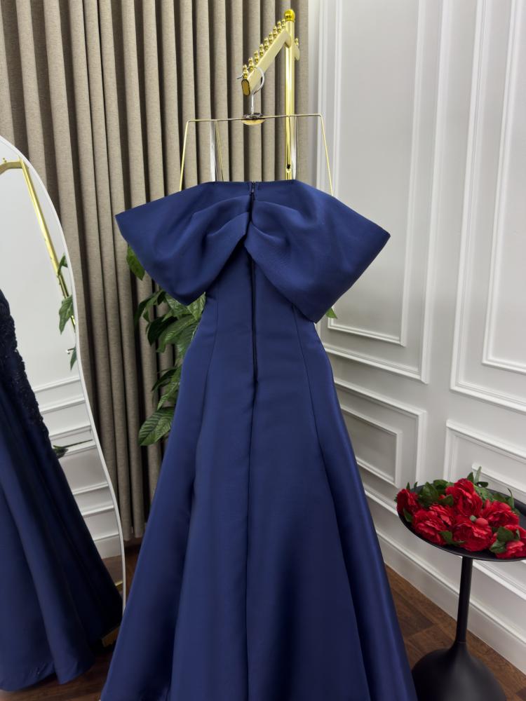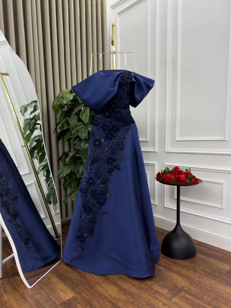 اسم الموديل // فستان سهره كحلي انيق مكشوف تطريز فخم